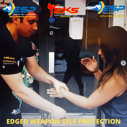 Above: Master. LJ taking student Sandra step by step through some Edged Weapon Self Protection.